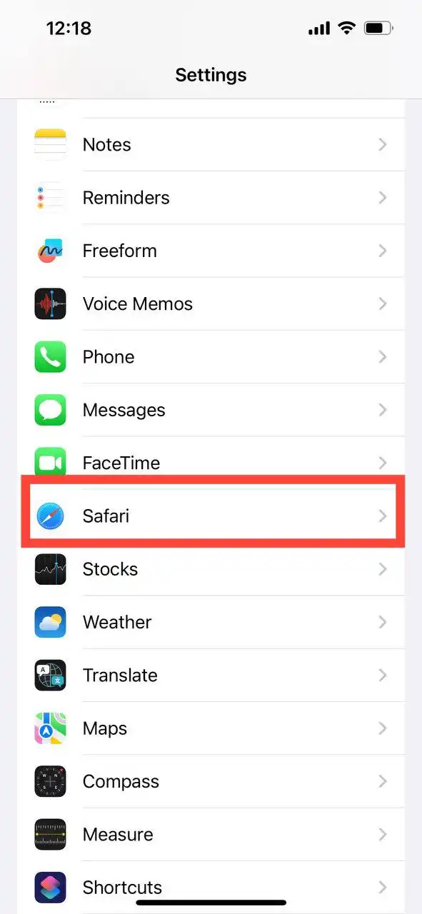 2- در منو تنظیمات (Setting) بر روی مرورگر Safari  کلیک کنید.