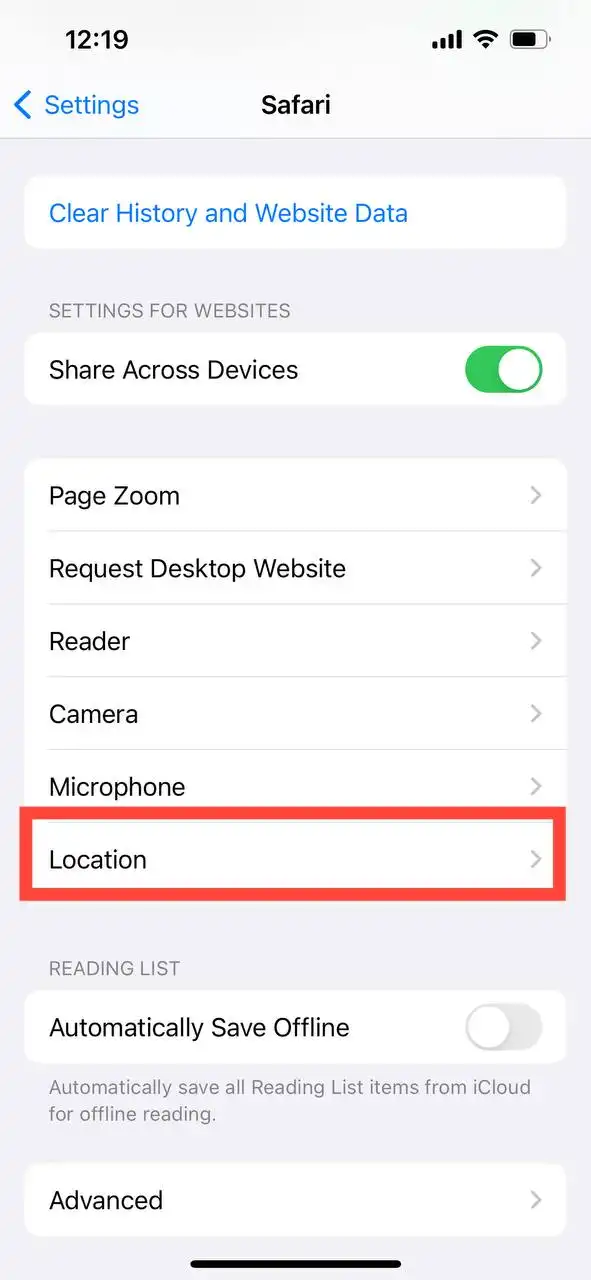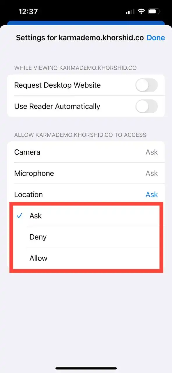 دسترسی دادن مرورگر به لوکیشن (Location) در گوشی های آیفون (IOS):