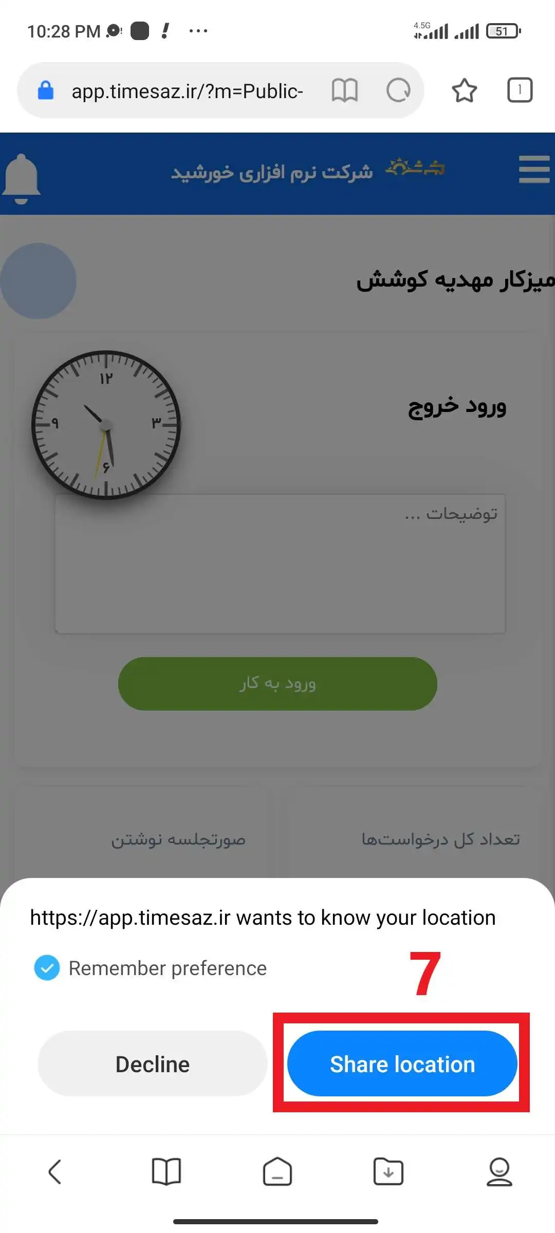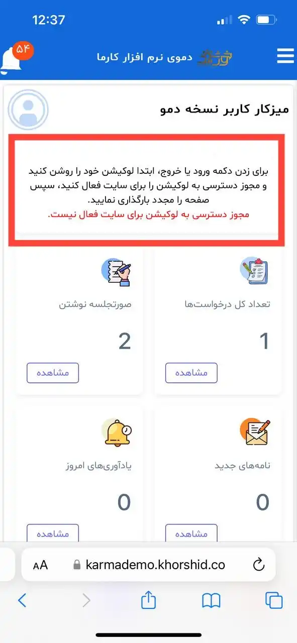 می توان گفت شاید به نکات زیر توجه نکرده اید که با خطا "برای زدن دکمه ورود یا خروج، ابتدا لوکیشن خود را روشن کنید و مجوز دسترسی به لوکیشن را برای سایت فعال کنید، سپس صفحه را مجدد بارگذاری نمایید. مجوز دسترسی به لوکیشن برای سایت فعال نیست." مواجه می‌ شوید.