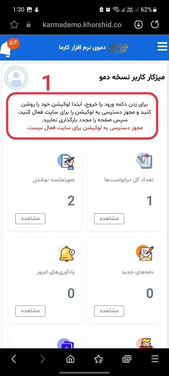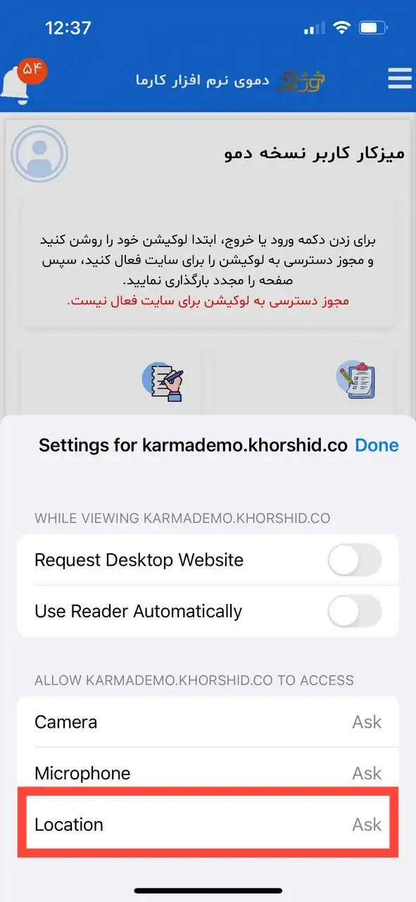 با تلفن همراه وارد شدم اما اخطار لوکیشن بهم داد