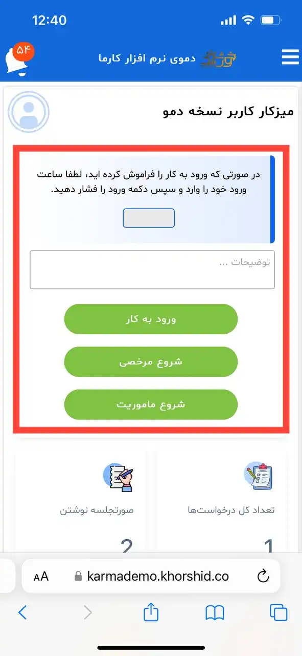 ماژول حضور غیاب ویژه پرسنل