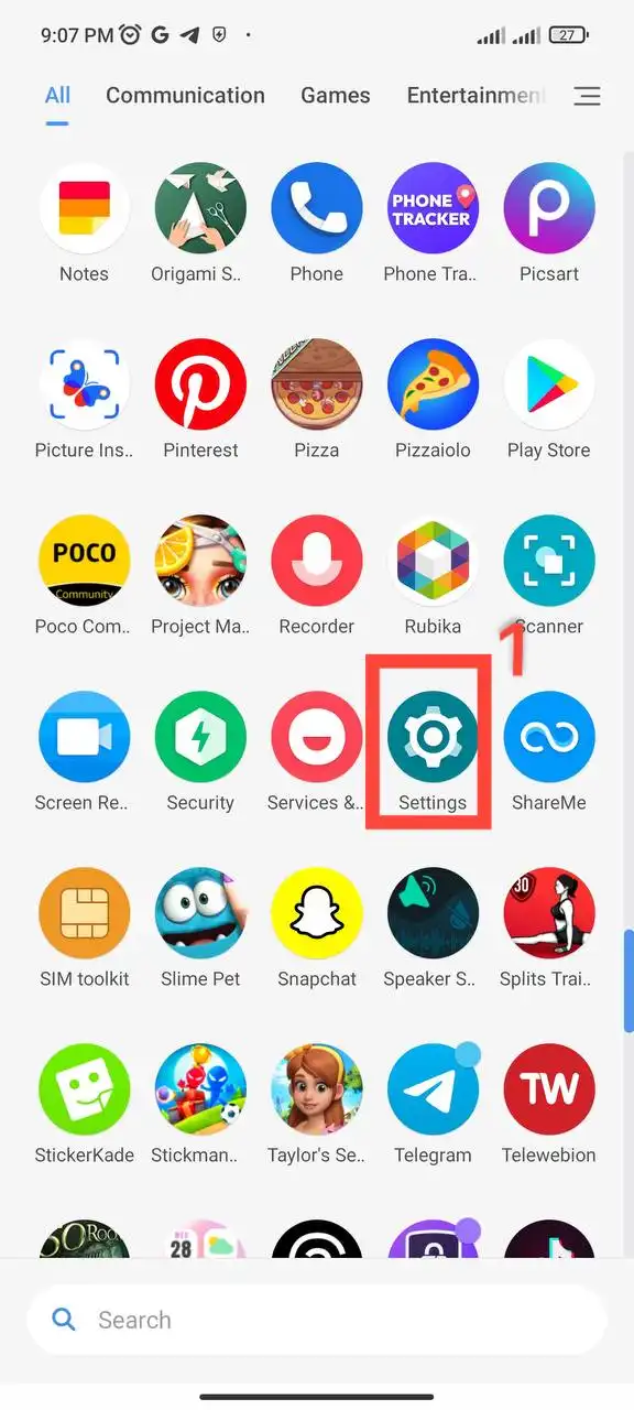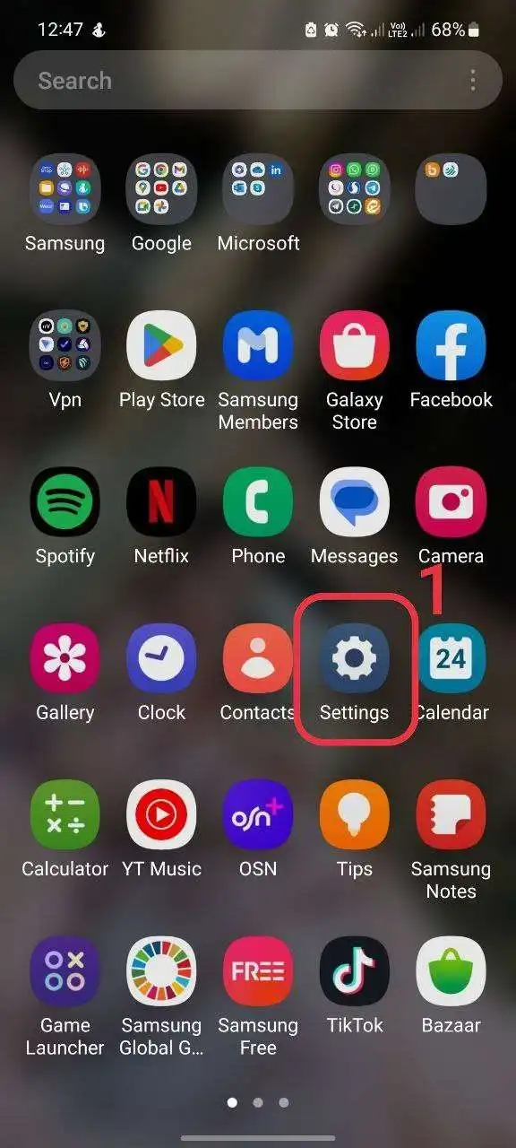 1- ابتدا به قسمت تنظیمات (Settings) گوشی بروید.