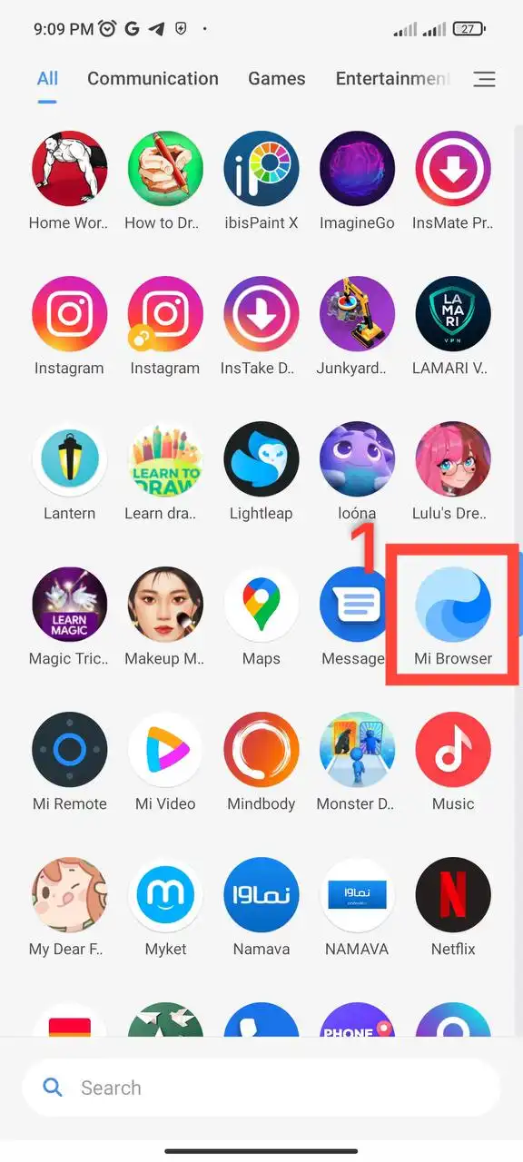 1- ابتدا مرورگر پیش فرض خود شیائومی(Xiaomi) را باز کرده.