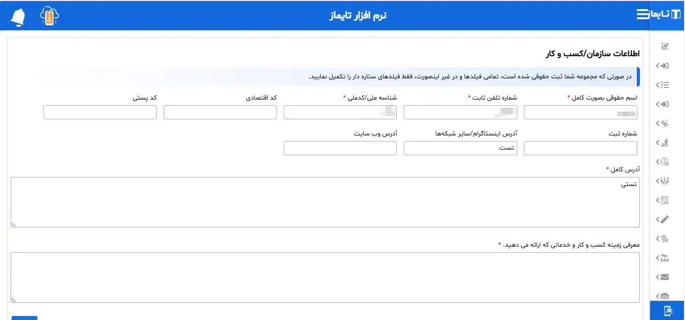 لذا توجه داشته باشید که پر کردن تمامی فیلدها برای اشخاص حقوقی ضروری است تا فرآیند ثبت نام و خدمات رسانی به بهترین نحو انجام شود.