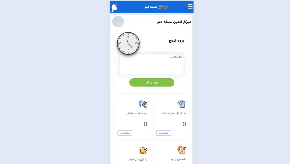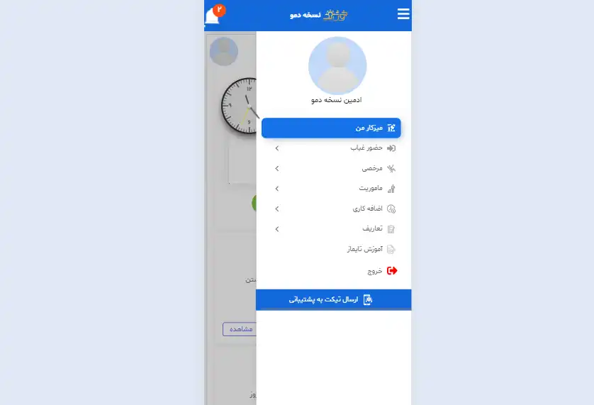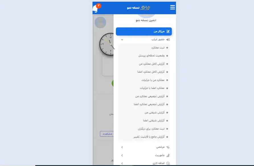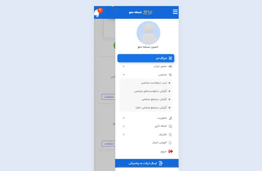 مشاهده اطلاعات تکمیلی ماژول حضورغیاب مشاهده اطلاعات تکمیلی گزارشات جامع حضورغیاب مشاهده اطلاعات تکمیلی ماژول مرخصی