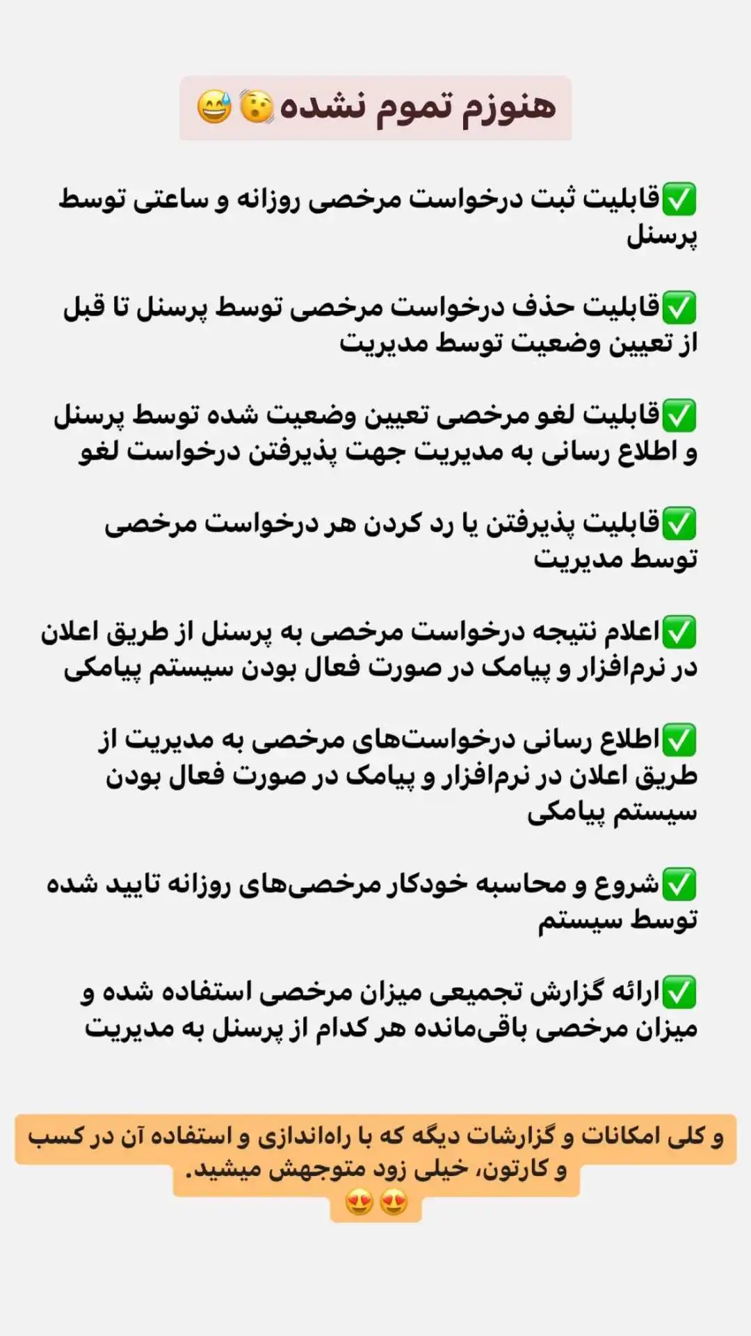 احیانا اگر بعضی از پرسنلت گوشی هوشمند ندارن اصلا نگران نباش. ما یه راهکار خیلی ساده براشون داریم. از ساعت ۸ الی ۱۵:۳۰ می تونی با شماره های زیر ارتباط بگیری.کارشناسان ما مشتاقانه راهنماییت می کنن.